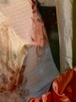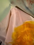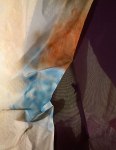 On the photographic surface the viewers can only see a familiar materiality of the fabric and the paint that was put upon it. This is a hint towards the means of classical painting: paint and fabric – the canvas.